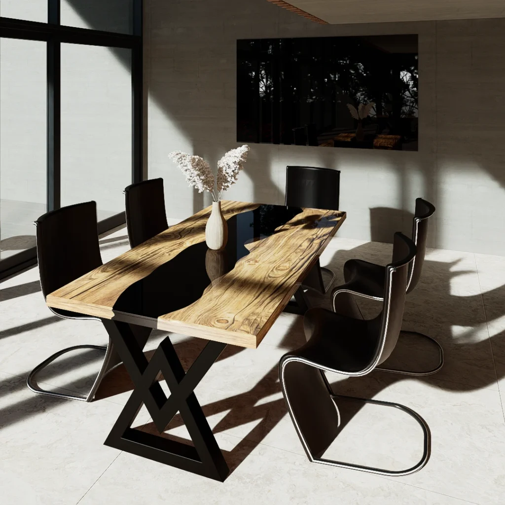 Imaginez une table qui n’est pas seulement un meuble, mais une œuvre d’art unique. Chaque création marie la noblesse du bois (noyer, chêne, olivier…) avec l’éclat raffiné d’une résine époxy premium, non toxique et garantie contre le jaunissement. Le résultat ? Une pièce intemporelle, robuste et élégante, qui sublime votre intérieur et attire tous les regards.